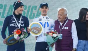 El tercer cajón del podio final de la carrera valenciana se lo llevó el también italiano Antonio Tiberi, (Bahrain Victorious). Aunque de equipos diferentes, los dos italianos representaban mayoría para las aspiraciones del colombiano, que estuvo a escasos metros de lograr su primer triunfo como profesional, algo que manifestó antes de partir a El Escarabajo, que seguramente se dará en las próximas competencias.